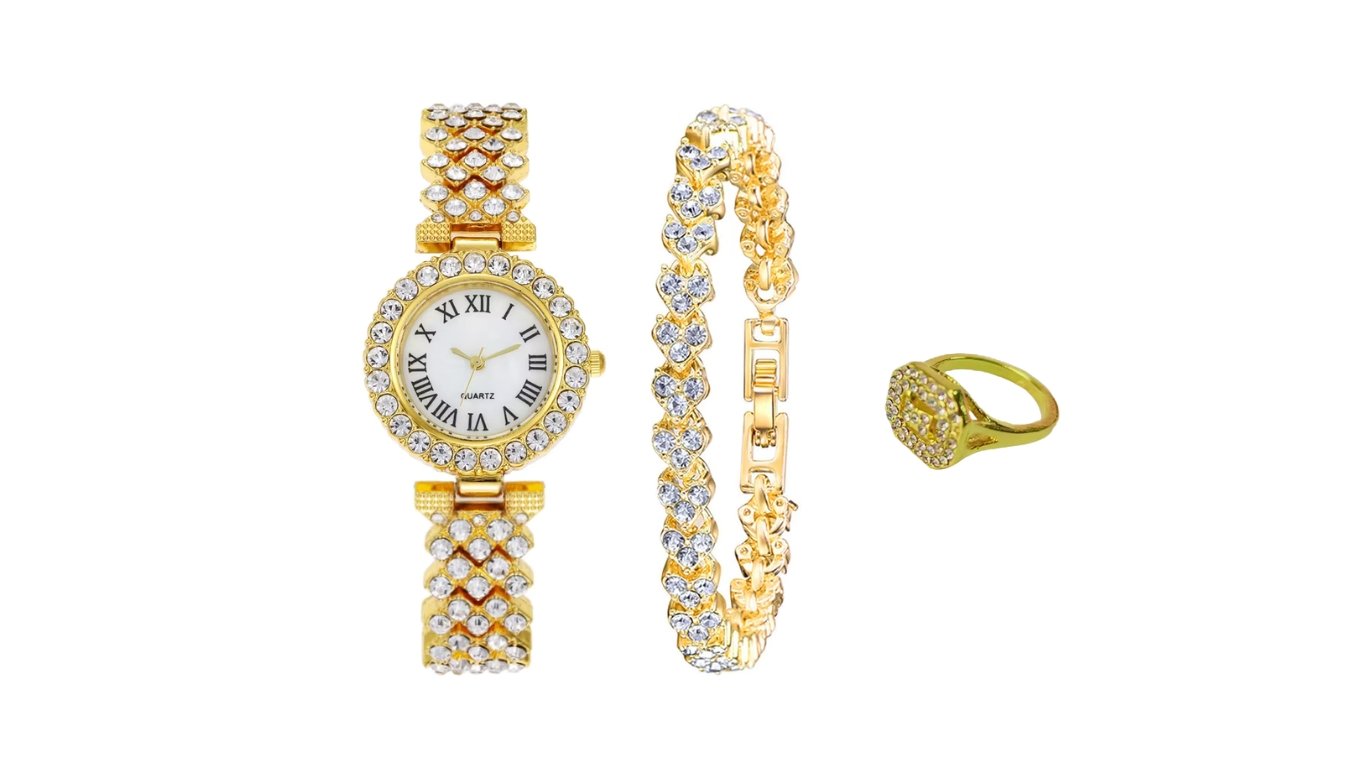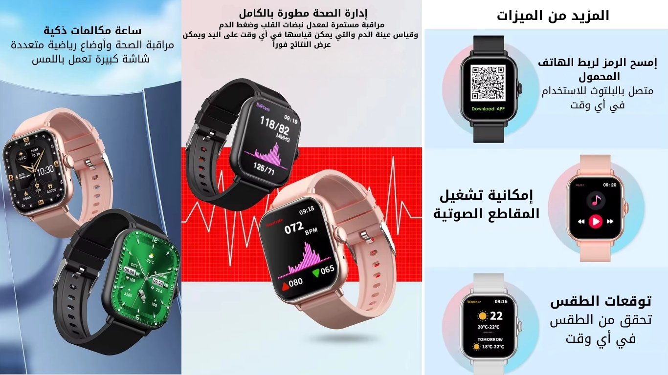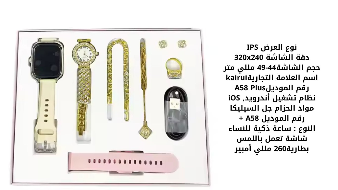 هدية نسائية (ساعة ذكية +ساعة يد +3اكسسوارات)